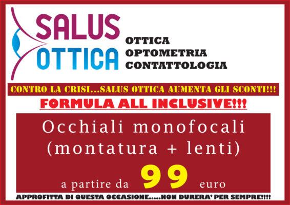 Salus Ottica è specializzato nella realizzazione di occhiali da vista e nella vendita al dettaglio di qualsiasi articolo per ottica ed è in grado con il laboratorio interno di montare su qualsiasi tipo di montatura qualsiasi tipo di lente anche in 24 ore.